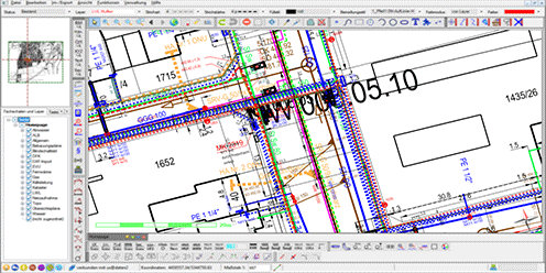 Voll netzwerkfähiges Programm zur Erfassung, Verwaltung, Darstellung, Auswertung und Ausgabe von Daten mit geographischem und/oder Objektbezug. Es bietet eine Vielzahl an Zeichen- und Bearbeitungs-funktionen, die umfangreich parametrierbar sind. Zu den Betriebsmitteln können Termine, digitale Dokumente und Bilder hinterlegt werden, die wie alle anderen Projektinformationen sowie deren Änderungen in der SQL-Datenbank gespeichert werden. Sie stehen jedem im Netzwerk angemeldeten Client in Abhängigkeit von dessen Lizenz und den Benutzerrechten zur Verfügung. Seit Kurzem ist auch die Verwaltung von LWL-Netzen in einer eigens hierfür entwickelten Fachschale (FS) verfügbar, die sowohl das Faserverbindungsmanagement beinhaltet als auch die Erstellung s.g. Faserreports gestattet.